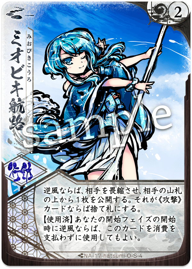 山札に戻せる枚数に違いはありますが、順風時も逆風時もドローするカードを操作できる点は共通しています。そのため、そのターンの風向きを知った上で有効なカードを用意することが可能であり、ハツミが抱える「次ターンの風向きを読んだ手札管理の難しさ」を解消することができます。