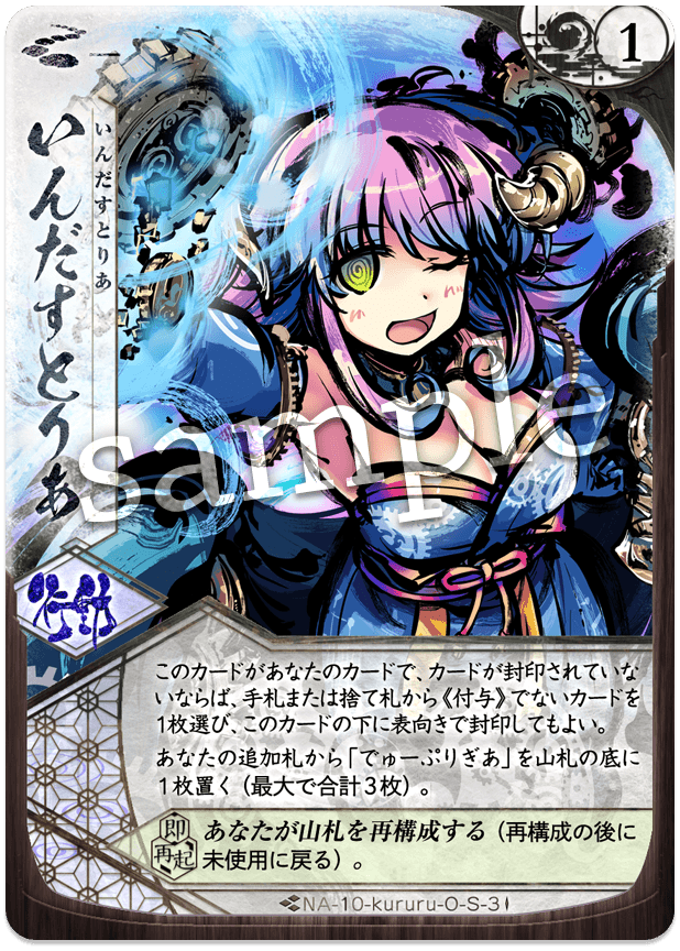 とるねーど、りげいなー、徹底抗戦を非全力で使用できるが、コレと全力札で2枠も埋めてしまうのがネック。機巧の都合でもじゅるーがないと使用できない点や、単体では仕事をしない点も低評価。ウバどれの回転を維持するためにハンドを伏せる場面で伏せづらい。